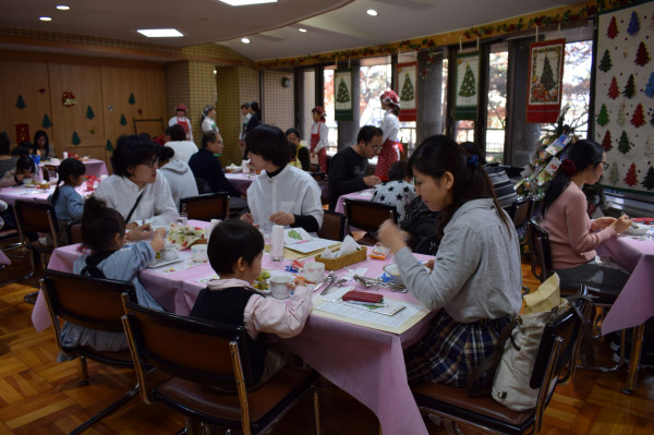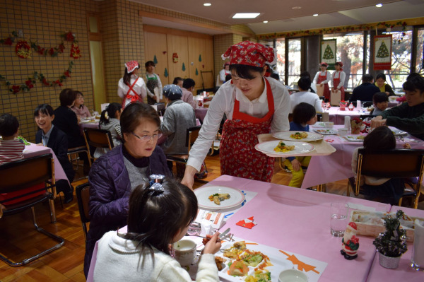 2003年より本学が毎年開催している、食物アレルギーの子どもとその家族を対象としたクリスマスパーティーで、今年で17回目を迎えます。生活文化学科食物栄養専攻の学生が、メニュー考案から試作、当日の調理、サービスなどを担当します。生活文化専攻は、パンフレットやポスター制作、企業の食物アレルギー対応に関する展示を行います。また、幼児教育学科の学生たちが参加者の子どもたちに向けて「ウエルカムコーナー」で手遊びや絵本の読み聞かせなどを行います。