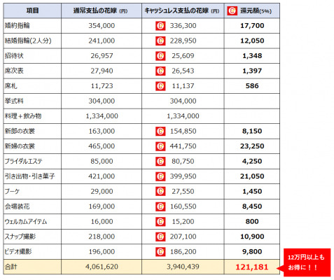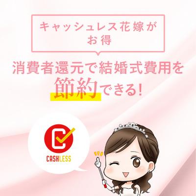という支払い方法が違うだけで、キャッシュレスならポイント還元により、実質的に数十万円が節約できることは新郎新婦様にとって嬉しい制度です。