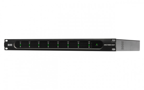 Rane Zone Power Eightは設備向け8チャンネル 70V/100V 8チャンネルアンプです。シーリング型スピーカー、ウォ ールマウント型スピーカー、ページングホーンなど複数台のスピーカーシステムに最適です。