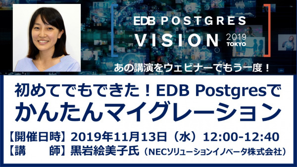 2019年8月1日に東京で開催された EDB Postgres Vision 2019 で好評を博した講演のリバイバルウェビナーです。