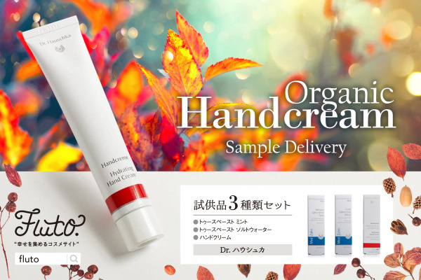 flutoでは「Dr.ハウシュカ」の「トゥースペイスト2種類セット」に「ハンドクリーム」を追加した、この季節の乾燥対策にピッタリな豪華な試供品セットの提供を開始します。