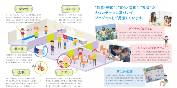 「Meiko Kids e(明光キッズe)」は、日本の将来を担う子どもたちにオールイングリッシュの環境を与え、グローバル化する世界で生き抜く人材を育成することを目指した学童保育施設です。“自然・季節”、“文化・芸術”、“社会”の3つのテーマに基づいたオリジナルのプログラムで、グローバル社会で通用する生きた英語を楽しみながら身につけることができます。
