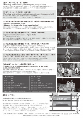 観世能楽堂の檜舞台を利用し、能・狂言の楽しみ方がわかる初心者向けワークショップや日本舞踊などの伝統芸能上演と、一般社団法人イマジンワンワールドが駐日各国大使館と協力して制作を進める「世界のKIMONO」による着物ファッションショーを行います。