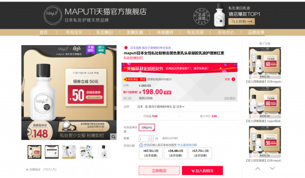 独身の日セールは1日限りの実施のため、中国の購買者は興味のある商品を事前に予約しても、その後の入金をせずキャンセル扱いにする行動が多くみられる実状があります。現地からその動向を聞いていた田中は、予約からの購入率を高めるため、予約客に対し特典として、人気商品『オーガニックフレグランスホワイトクリームMAPUTI』のパウチパッケージを全員に、またこのセールのためにオリジナルで作成したMAPUTIのブランドロゴ指輪を抽選で1,000名にプレゼントする施策を行いました。