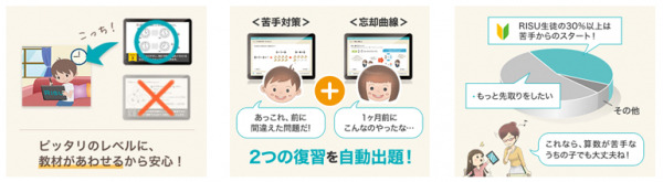 「 RISU算数 」はタブレット学習+東大生らの個別フォローを組み合わせた、算数に特化した学習教材です。