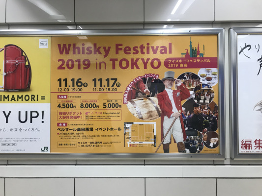 昨年のウイスキーフェスティバルにも出現したジョニーウォーカーのコスチュームを着た男性が大きく目立つ特注ポスターが、JR高田馬場駅とJR新宿駅構内に11月11日(月)より掲出されました!!