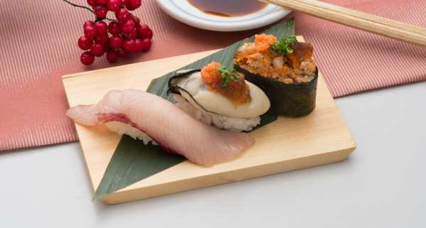内容:寒ぶり、蒸しがき、あん肝 各1貫ずつ