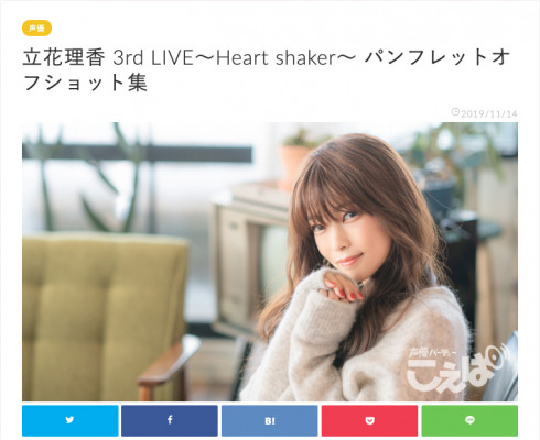 株式会社EARLY WING(本社: 東京都港区/代表取締役社長: 佐藤 龍)は、声優ファン向けWebマガジン『こえぱ(声優パーティー)』にて、立花理香の特集を掲載したことをお知らせいたします。