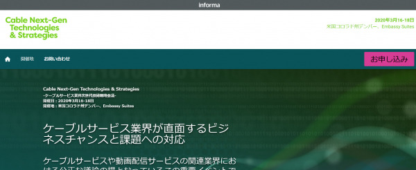 会議:「Cable Next-Gen Technologies & Strategies-ケーブルサービス業界次世代技術戦略会議」