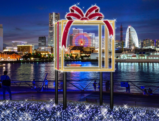 テーマ:伸びゆく「未来の夜景・YOKOHAMA」コスモワールドの観覧車や横浜赤レンガなど、発展するみなとみらいの夜景を切り取るふたつのギフトボックス。Anniversary(記念日、未来を約束した二人)をイメージ。光るギフトボックスの中にみなとみらいの観覧車の夜景や赤レンガの夜景を入れて撮影すると…特別な夜景プレゼントボックスが完成します!
