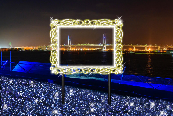 テーマ:港情緒溢れる「古き良き夜景・ヨコハマ」今も昔も横浜港を支え続けている横浜ベイブリッジを切り取るフォトスポット。アンティーク調の光の額縁の中に横浜ベイブリッジやオレンジ色に瞬く本牧ふ頭や大黒ふ頭の夜景を入れて撮影すると…特別な夜景プレゼントボックスが完成します!古き良きヨコハマのレトロな1枚をどうぞ!!
