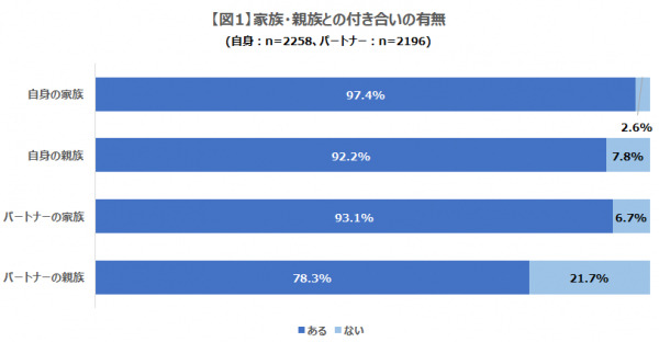 ・96.1%の人が「自身の家族・親族との付き合いが上手くいっている」と思っている