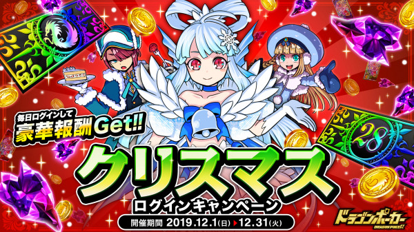 株式会社アソビズム(本社:東京都千代田区、代表取締役:大手智之)は、App Store・Google Play にて好評配信中のリアルタイム合体カードバトル『ドラゴンポーカー』で、2019年12月1日(日)より「クリスマスログインキャンペーン」を開催いたします。