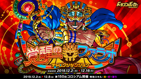 株式会社アソビズム(本社:東京都千代田区、代表取締役:大手智之)は、App Store・Google Playにて好評配信中のリアルタイム合体カードバトル『ドラゴンポーカー』で、2019年12月2日(月)より、復刻チャレンジダンジョン「覚醒のファラオ」を開催いたします。