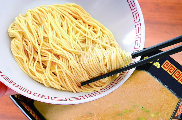 臭みが全くないとんこつスープに、一蘭特製生麺と、唐辛子を基本に30種類以上の材料を調合し熟成させた「赤い秘伝のたれ」が絡み、深い味わいを醸し出します。現在では博多ラーメンの定番スタイルとなった、ラーメンの真ん中に赤いたれを浮かべる手法は一蘭が元祖です。幸運をもたらすとされる絵柄ばかりをあしらった「八角どんぶり」でご賞味ください。