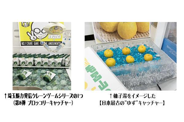 当店では、今までに埼玉の魅力をまだ知らない沢山の方に、埼玉の魅力をもっと知ってもらいたいと、埼玉の特産品や名産品を景品にした「埼玉魅力発信クレーンゲーム」を登場させ、楽しみながら埼玉のお土産としてゲットできるような工夫をしてきました。今回の「日本最古の“ゆず”キャッチャー」も、ゲットするときも楽しんでもらいたいと思い、“冬至に入る柚子風呂をイメージ”した置き方にしました。担当者によると、「長い歴史が詰まった柚子を通して、まだまだ知らない埼玉の魅力をもっと沢山の方に知ってもらいたいです。『桂木ゆず』をゲットするときから、12月の行事でもある冬至の気分を味わってもらい、寒い冬を乗り切って欲しいです。」とのこと。