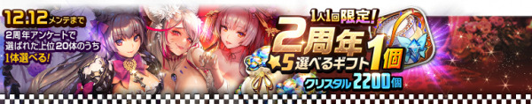 出現する★5チャイルドは2周年記念アンケート上位20体のみのピックアップ召喚を開催いたします。