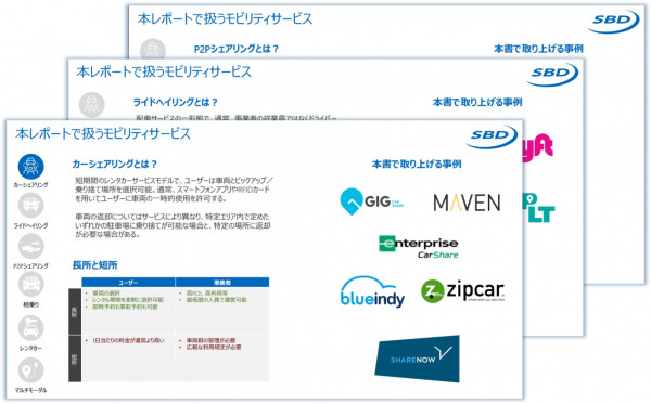 現在、欧州、米国、中国では、カーシェアリング、ライドヘイリング、P2Pシェアリング、相乗り、レンタカー、マルチモーダルと様々なモビリティサービスが提供されており、多くのOEMがモビリティ関連のサービス/イニシアチブ/プログラムを発表しています。