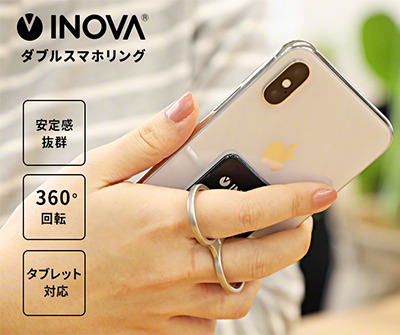 年々大型化するスマートフォン、画面サイズが大きくなったことで落下時の破損リスクは高まるばかり。5年前からスマホリングを販売している当社は、安定感を向上させたい。しかし野暮ったくしたくない。試行錯誤の結果、このダブルスマホリングを開発しました。