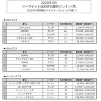 オークネット バイクオークション2020年3月成約排気量別ランキング