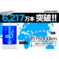 縦で並べると地球を1/3周(約13,000km) 強炭酸水『KUOS -クオス-』累計販売本数6,217万本突破!