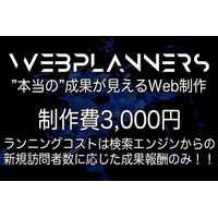 制作費3,000円で集客力の高いホームページ制作「WEBPLANNERS」がリニューアル。 保守管理費無料。SEO対策費無料。【ランニングコストは検索エンジンからの新規訪問者数に応じた成果報酬のみ】