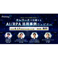 AIポータルメディア「AIsmily」がテレワークで活躍するAI/RPA活用事例ウェビナーを開催!Withコロナを乗り切る!2020年6月17日(水)15時~