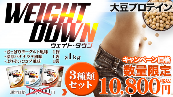 名称 : ビーレジェンドプロテイン WEIGHT DOWN 3種セット