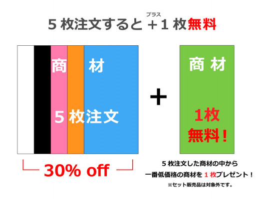 「追加キャンペーン!5枚注文するとさらに1枚プレゼント!」