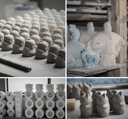 絵付けを特徴とする九谷において、素地づくりは裏方の仕事として、一般にはあまり知られていません。しかし、小松八幡は、全国的にも稀な、置物素地製陶所の集住地であり、とても高度な技術力を持っています。