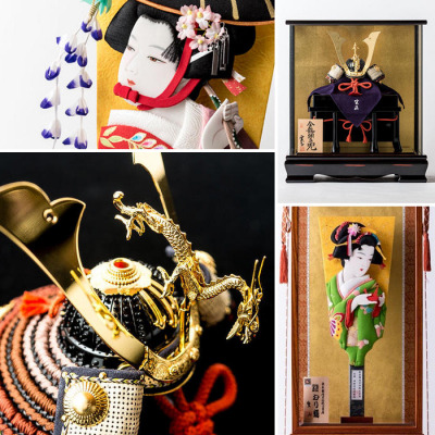 また、今年は新たに「兜」と「羽子板」も取り揃えております。繊細な細工が集結した迫力溢れる兜。板上に押絵の技法で、物語が色鮮やかに、かつ立体的に表現された羽子板。どちらも見ごたえのある逸品です。