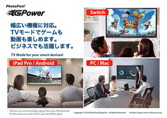 PhotoFastは、ユーザが「ゲームをもっと楽しめて、もっと使いやすくなる」をコンセプトに、温めてきたアイデアを製品化するため、2019年にプロジェクトをスタート、これまでになかった画期的な新製品「GPower」を開発しました。GPowerは、Nintendo Switch(TM)に対応する、SwitchをPD高速充電しながらTVモードで高精細4K大画面でゲームが楽しめるポケットサイズの高性能 USB-C HDMI マルチポートアダプタです。