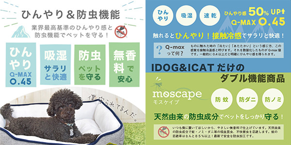 ひんやり感を感じることができる接触冷感加工と最新の防虫加工を贅沢にWで施した、IDOG&ICATだけの新しいペットベッドを是非お試し頂き、「ペットとの夏」を思いっきり満喫して貰えたらと思います。