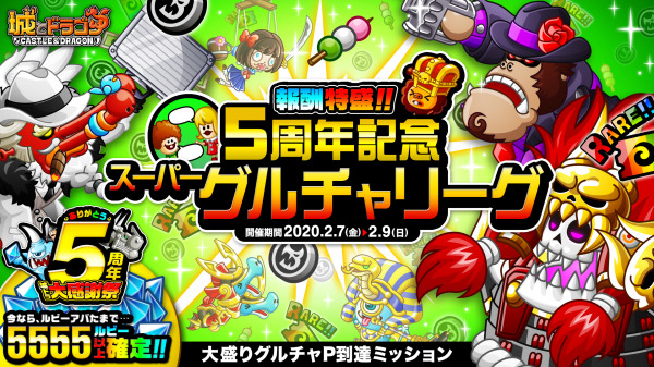 株式会社アソビズム(本社:東京都千代田区、代表取締役:大手智之)は、App Store・Google Playにて好評配信中の『城とドラゴン』で、「報酬特盛!スーパーグルチャリーグ」を2020年2月7日(金)より開催いたします。