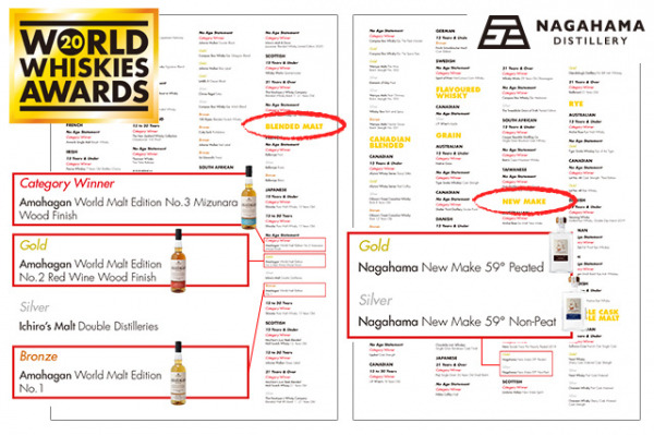 この度、長濱蒸溜所では全部で5つのボトルを出品し、「AMAHAGAN(アマハガン) World Malt Edition No.3」がカテゴリーウィナーを、その他の4種が下記を受賞いたしました。