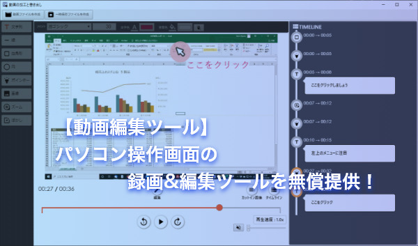 従来版では主にパソコン画面操作を録画するだけでしたが、今回新たにリリースする「LOGOSWARE 動画編集ツール」では、その録画動画を簡単操作で編集できる機能を加えました。