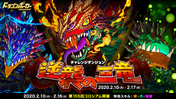 2020年2月10日(月)より、チャレンジダンジョン「逆襲の三竜」が復刻開催いたします。
