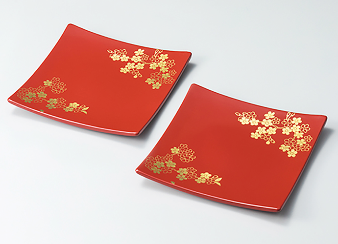 【箔一】本金箔 紅桜 スクエアプレート S 2枚セット ~金箔(金沢箔)の食器~