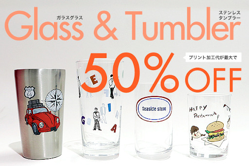 オリジナルグラス・タンブラーなどのプリント代が最大50%OFF!