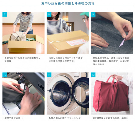 ■ 宅配クリーニング リアクア「衣類のお直し・修理サービス」の紹介ページ
