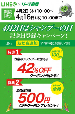 4月2日のリーブ21・シャンプーの日を記念して、キャンペーンを開催しています。