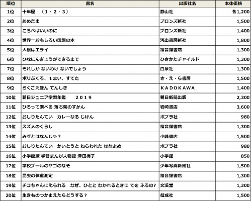 日本出版販売株式会社(代表取締役社長:奥村 景二、略称:日販)は、図書館選書センターに2019年4月~2020年3月に来場した、約1,400館以上の学校図書館関係者が選書した図書と、その出版社のランキングを発表しました。