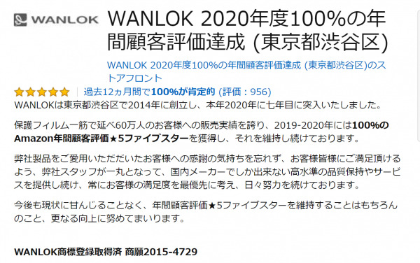 WANLOKはモバイルアクセサリー関連の商品開発や製造・販売を行うメーカーです。2014年からの6年間で合計60万人のお客様に販売してきた実績をもち、5年連続でAmazon年間顧客評価「5★ファイブスター」を獲得しており、2019年度はついに100%の顧客満足度を獲得しました。