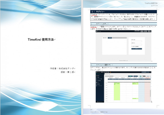 操作マニュアルや業務手順書などを作る場合、1ページ内に含まれる画像の数や説明文の位置があらかじめテンプレートとして設定されているため、マニュアルの見た目を自動的に整えることができます。