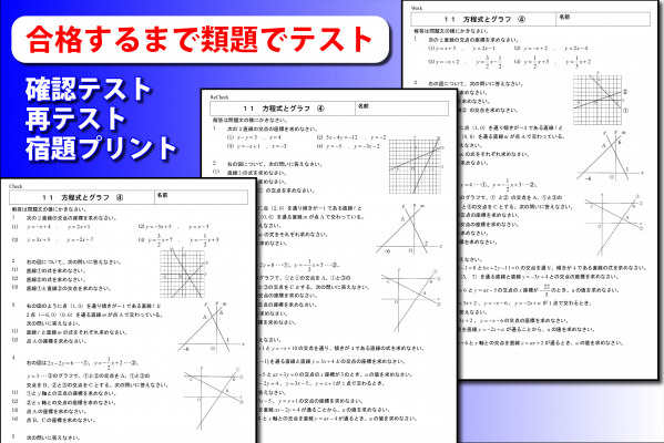 ・ウィンパスは文理が発行したテキストで、プリントは基本問題に準じて作成してあります。テキストの問題を解いた後に、確認テスト、再テスト、再々テスト、宿題プリントと最大4回演習できます。