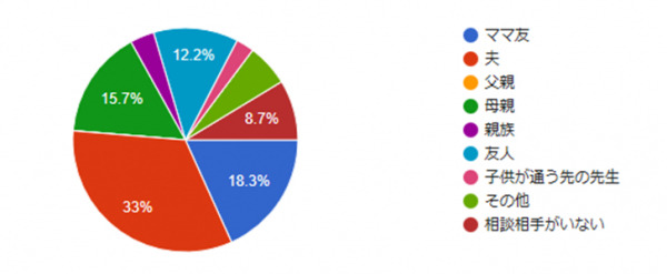 次に「ママ友」へ相談する割合が18.3%と多い。