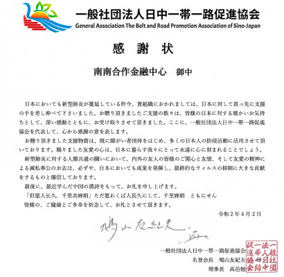 今回、鳩山由紀夫元日本首相の協力のもとで、日本障碍者協議会、及び老人ホーム、病院、学校等ほかの法人団体に数万枚前後のマスクを集め、これから順次配布する予定。また、寄付における全ての情報、及び証書はbithelpチャリティプラットフォーム上のブロックチェーンに記録、保存したため、随時追跡可能となっています。