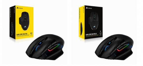 DARK CORE RGB PROは、PIXART社製の超高精度PMW3392オプティカルセンサーを搭載した、最大解像度18,000dpiのワイヤレスゲーミングマウスです。1msの低遅延で接続する2.4GHz高速ワイヤレスと、高速転送とセキュリティを高めたBluetooth(R) 4.2 + LEに対応、2つの無線通信と付属するUSBケーブルによる有線接続が可能です。最大50時間持続するロングライフバッテリーの採用により、連続したゲームシーンにおいても、バッテリー切れの心配をすることなく快適なプレイを実現、先進のドライバソフトiCUEにより、約1680万色のLEDバックライトカラー設定、マウスパッドチューニング、マウスリフト検知機能、アングルスナップ機能、高度なマクロ機能などの設定が可能です。付属のケーブルでマウス本体を充電する「DARK CORE RGB PRO」と、Qi(R) ワイヤレス充電に対応した「DARK CORE RGB PRO SE」の2つのモデルをラインアップ。