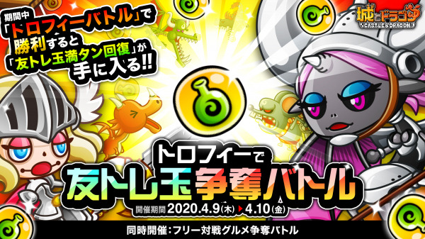 株式会社アソビズム(本社:東京都千代田区、代表取締役:大手智之)は、App Store・Google Playにて好評配信中の『城とドラゴン』で、「トロフィーで友トレ玉争奪バトル」を2020年4月9日(木)より開催いたします。