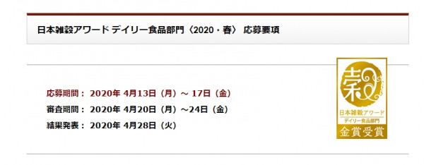 デイリー食品部門〈2020・春〉募集要項ページ